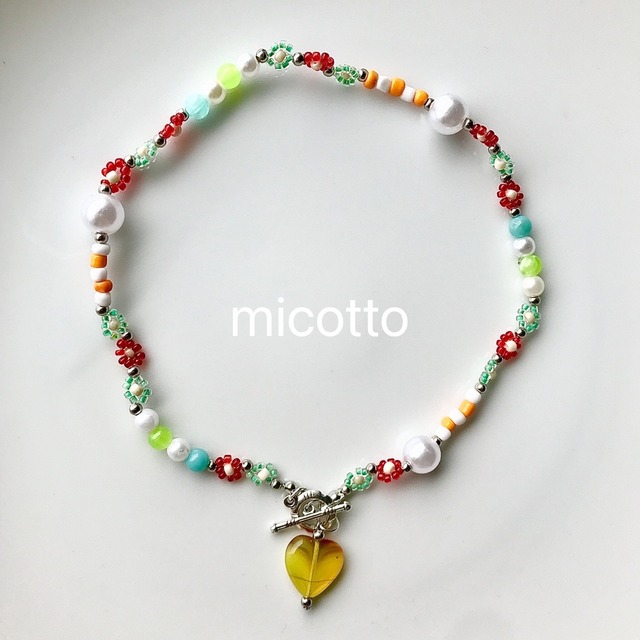 長さ:37cm(チャーム2cm) 鮮やかなお花とパールをふんだんに散りばめています♡ フロントにはガラスのハートチャームを♡ 彩豊かなので意外と合わせやすく、首元がぱっと華やかになります♡ ※注意事項 全ての商品を簡易ラッピングさせて頂き発送致します。 1点ずつ心を込めて手作業で制作しておりますが、色や形に若干の違いが生じる場合がございますのでご了承ください。 ご使用後は金具部分をティッシュ等でお拭き取りの上、高温多湿を避けた場所にて保管頂けますと綺麗な状態が維持できます。 色や素材感はできるだけ実物に近いものを掲載しておりますが、光の具合やPC環境などにより違いが生じる場合がございます。 お届けした商品に破損や不備、商品の不足があった場合、商品到着後3日以内にご連絡ください。確認の上で、至急交換または返品の対応をさせていただきます。