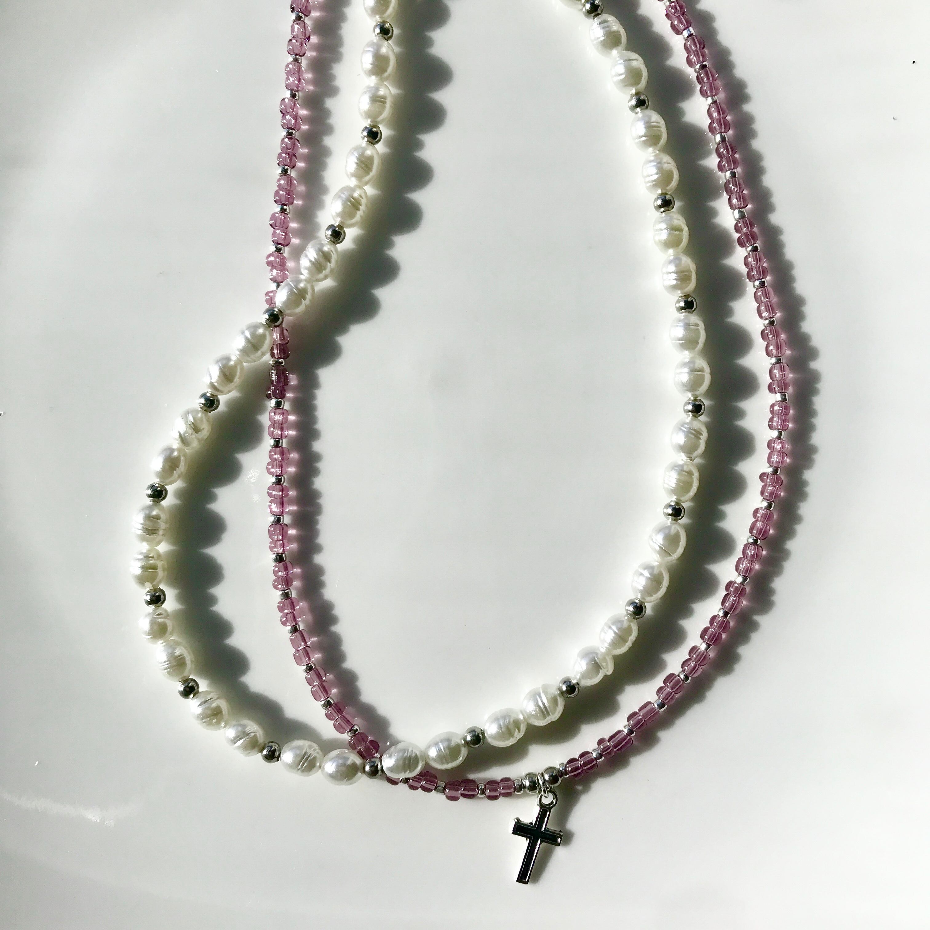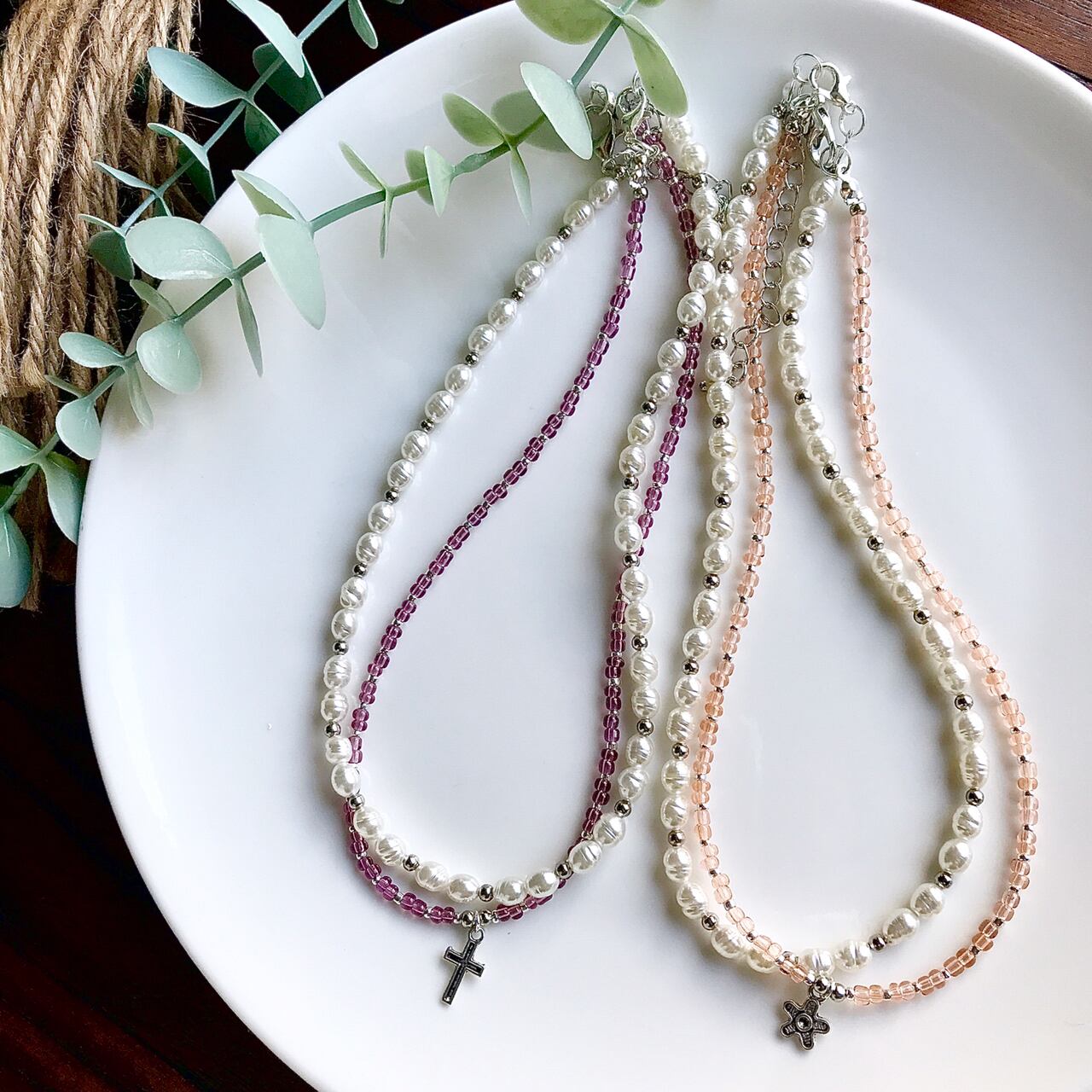 それぞれお手持ちのネックレスとの組み合わせも可愛いと思います。