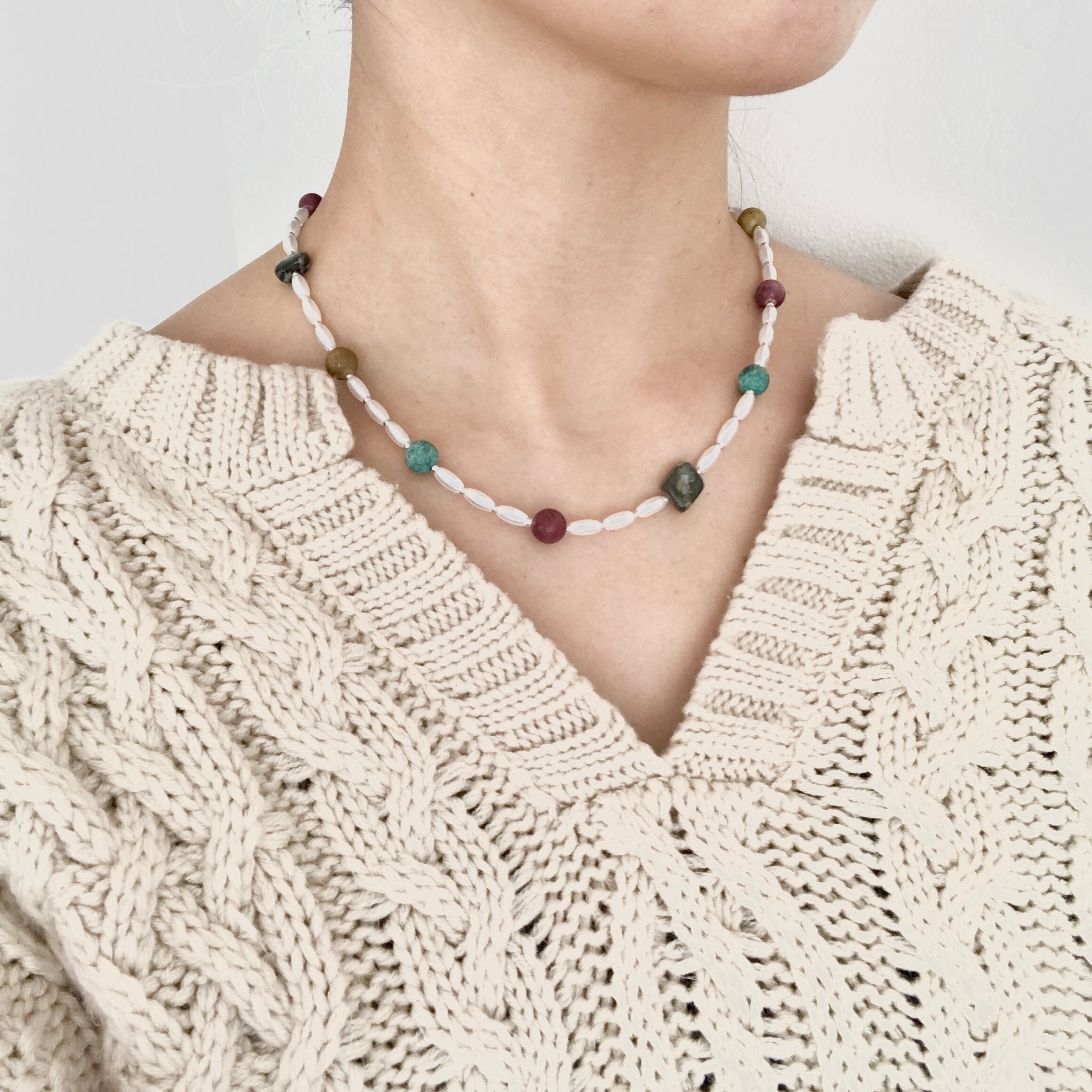 天然石の落ち着いたカラーはお洋服にも合わせやすいので、季節問わずお楽しみ頂けます。