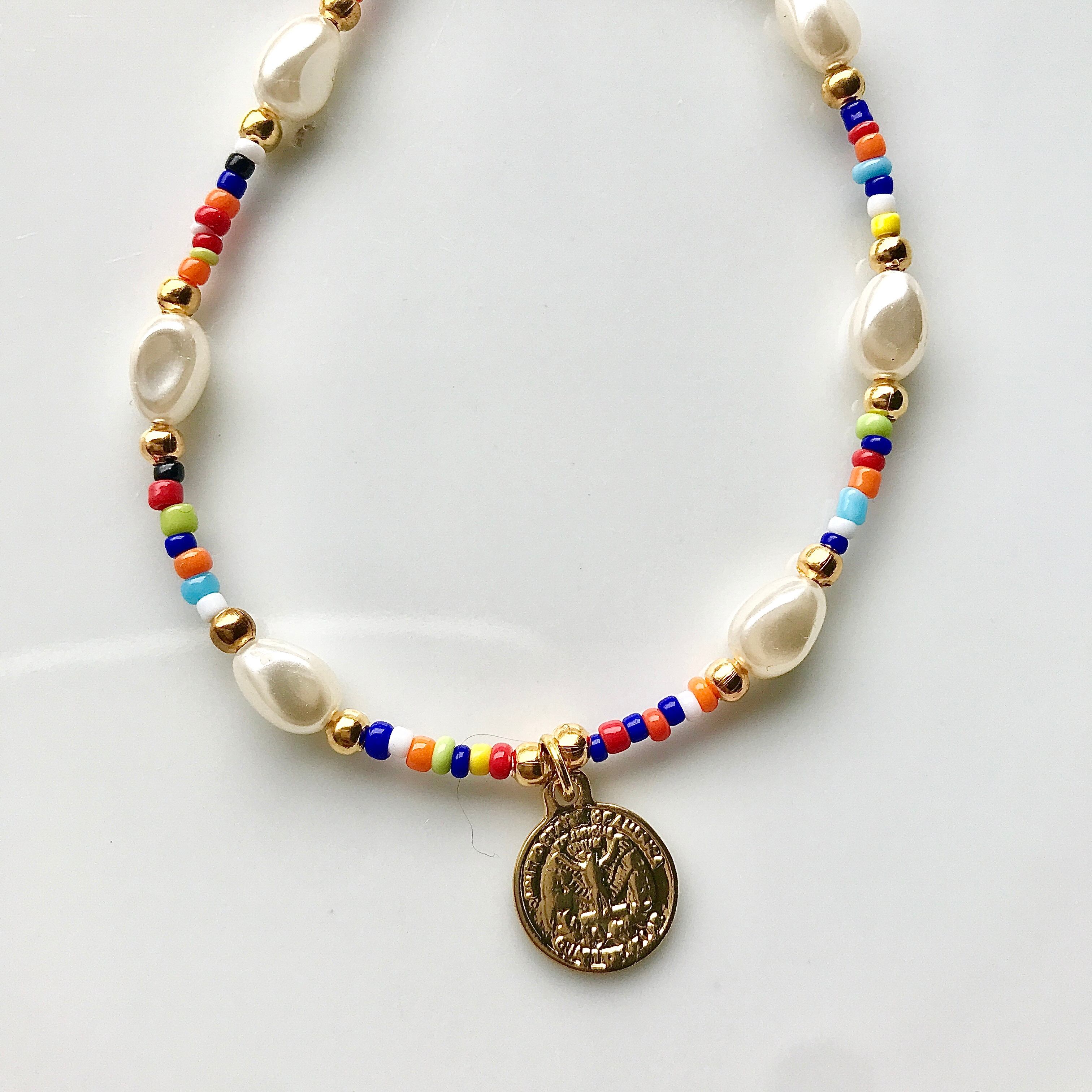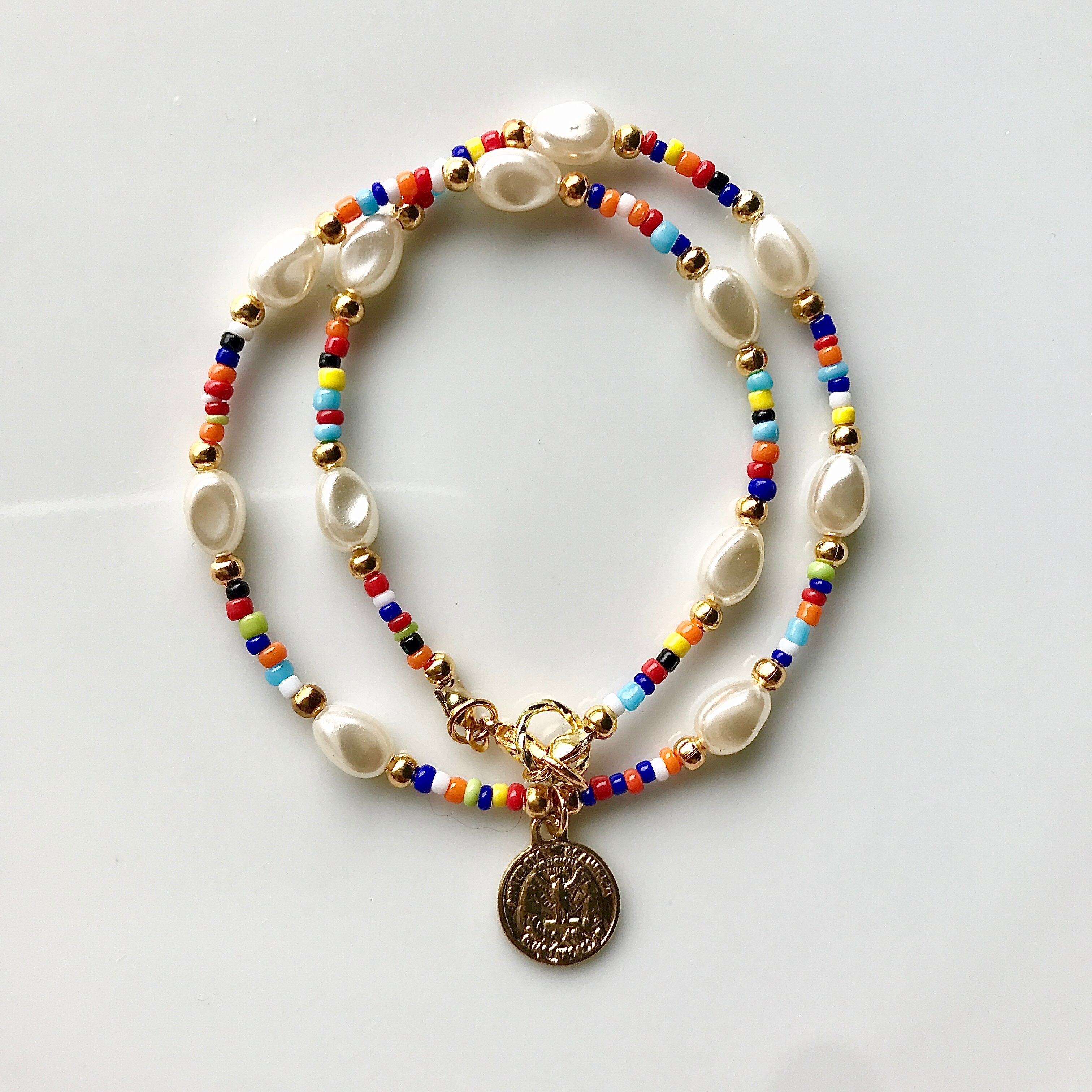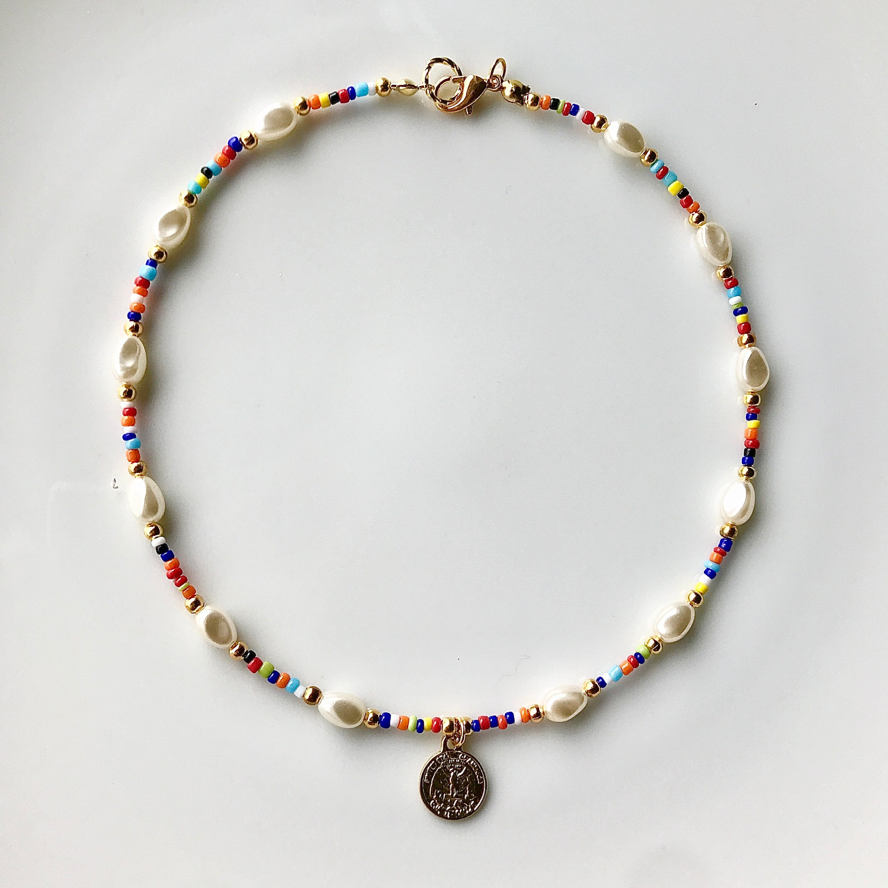 襟元がぐっと華やかになるcolorful beadsのネックレスです✴︎フロントにはコインチャームが可愛いです。