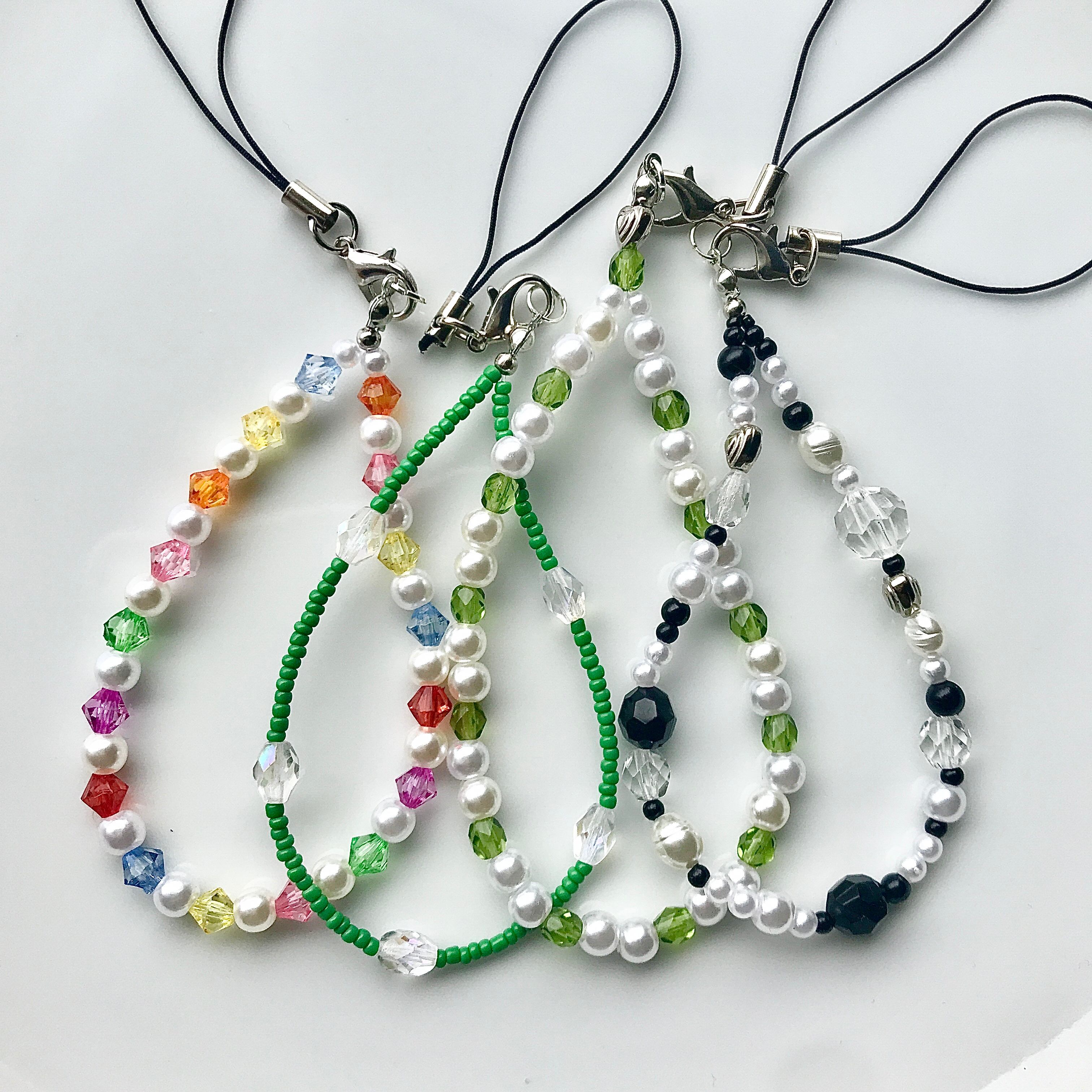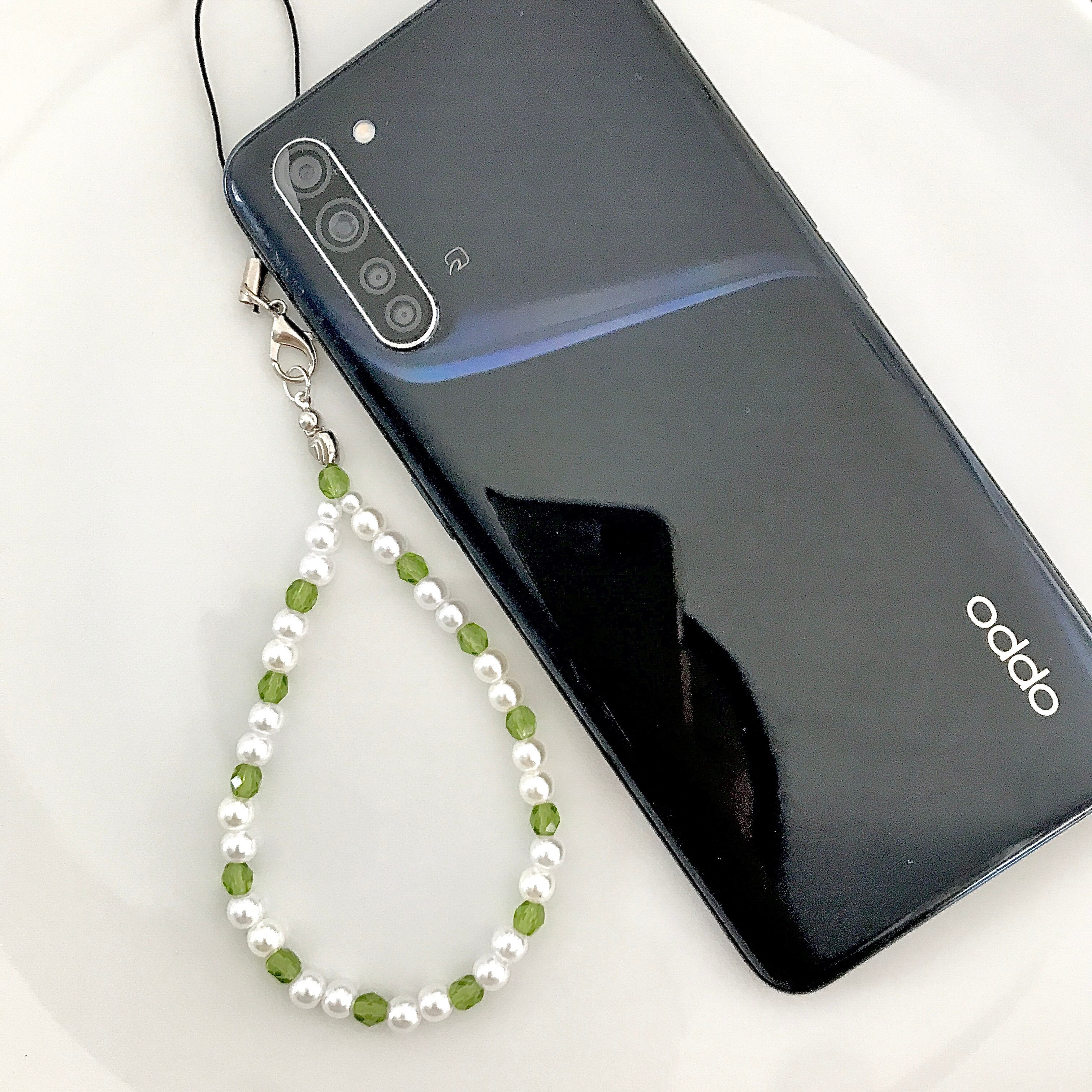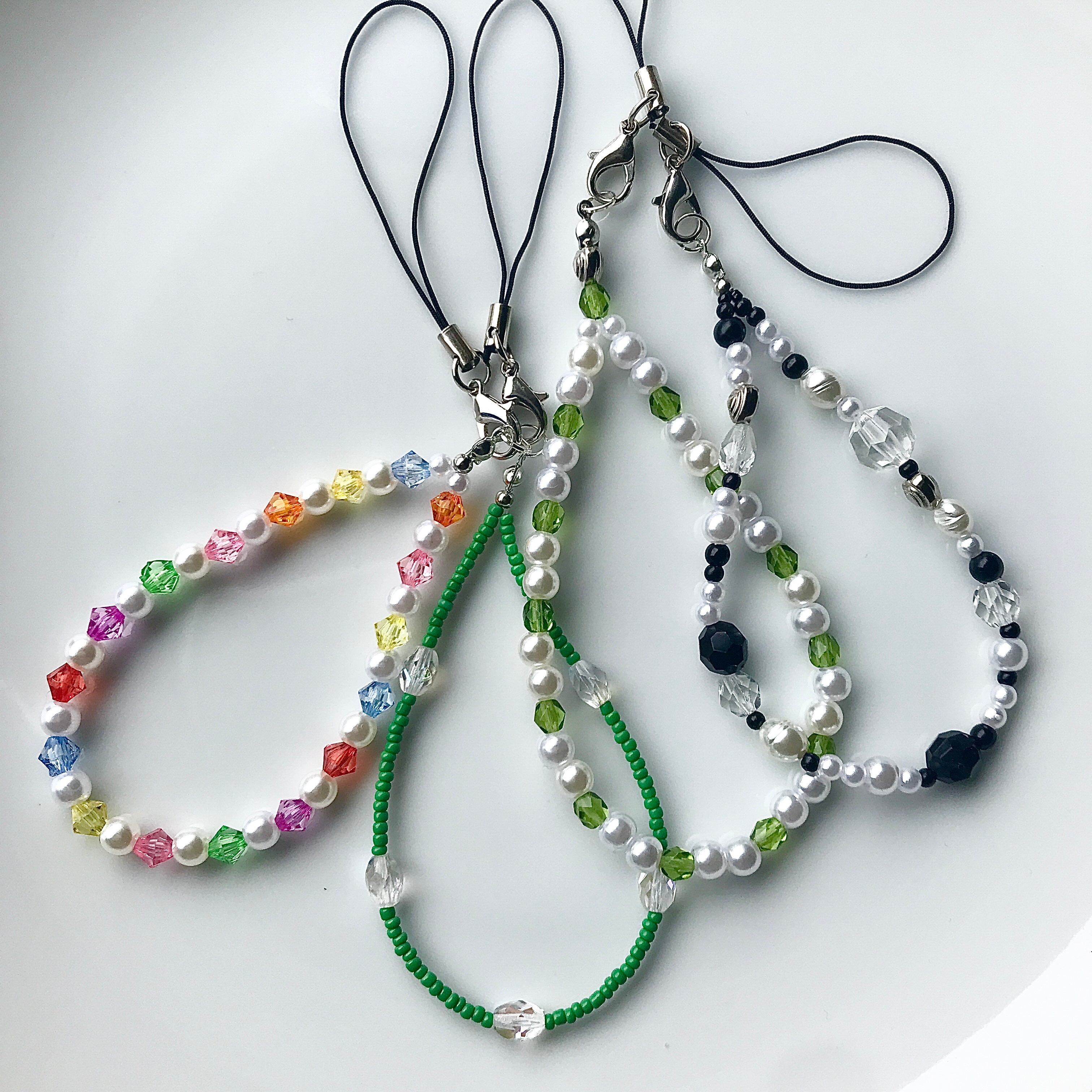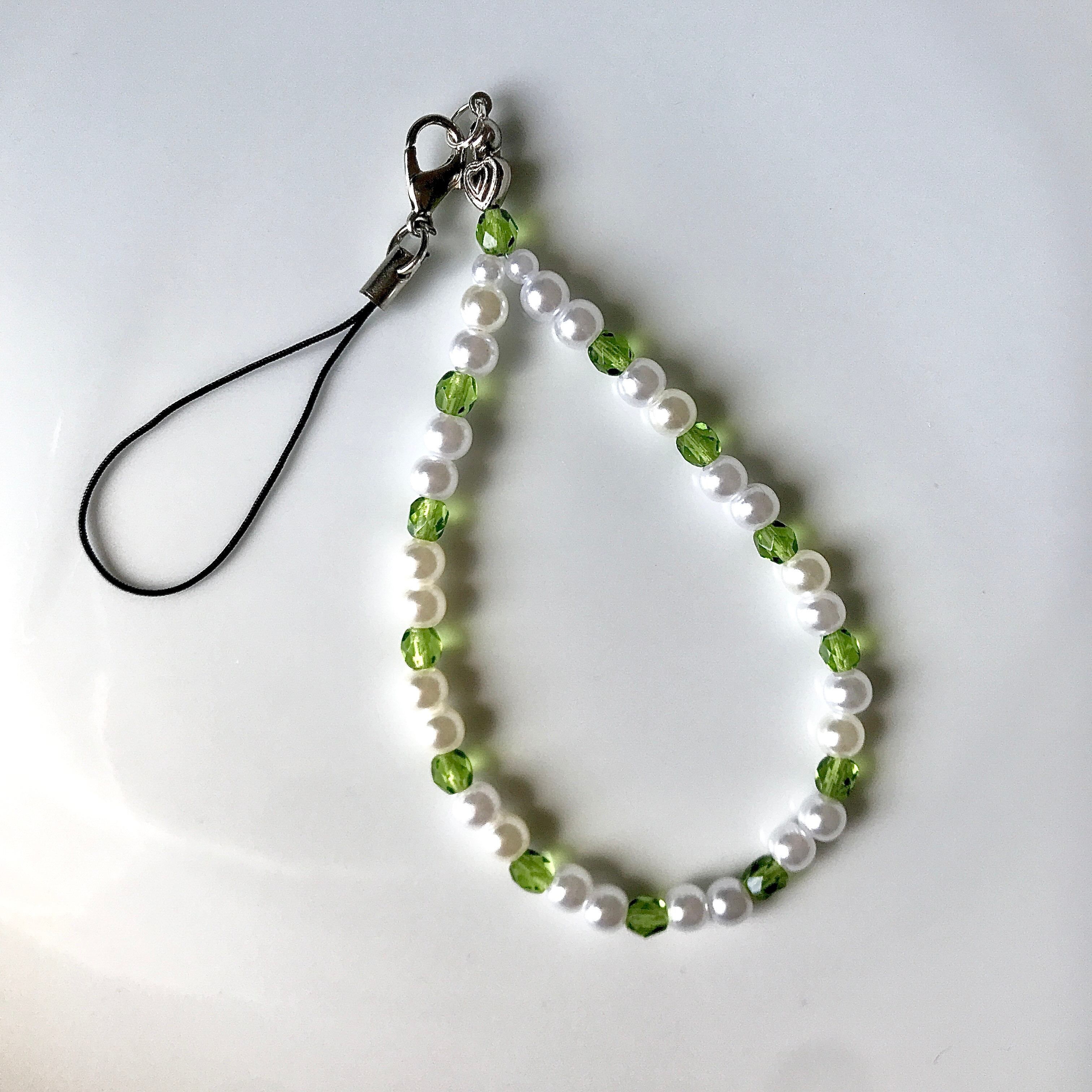 グリーンの多面カットガラスビーズが鮮やかで、光を反射するとキラッと輝きます✴︎
