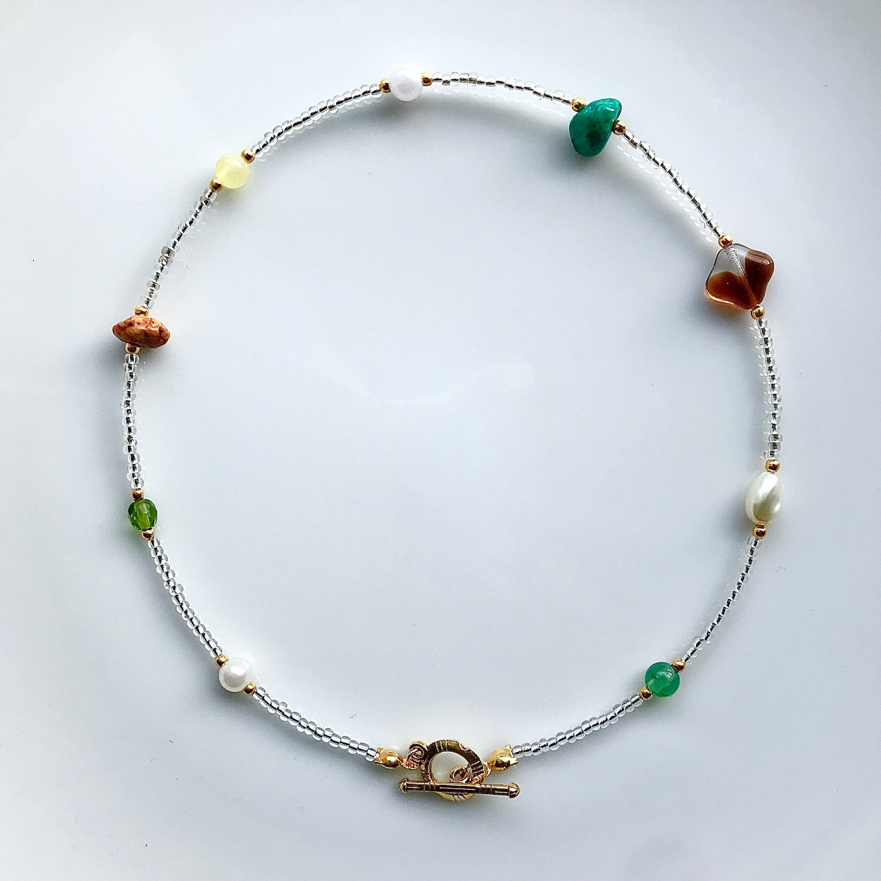 涼しげなクリアビーズに様々なガラスビーズやシェルビーズ等のモチーフを通しました✴︎