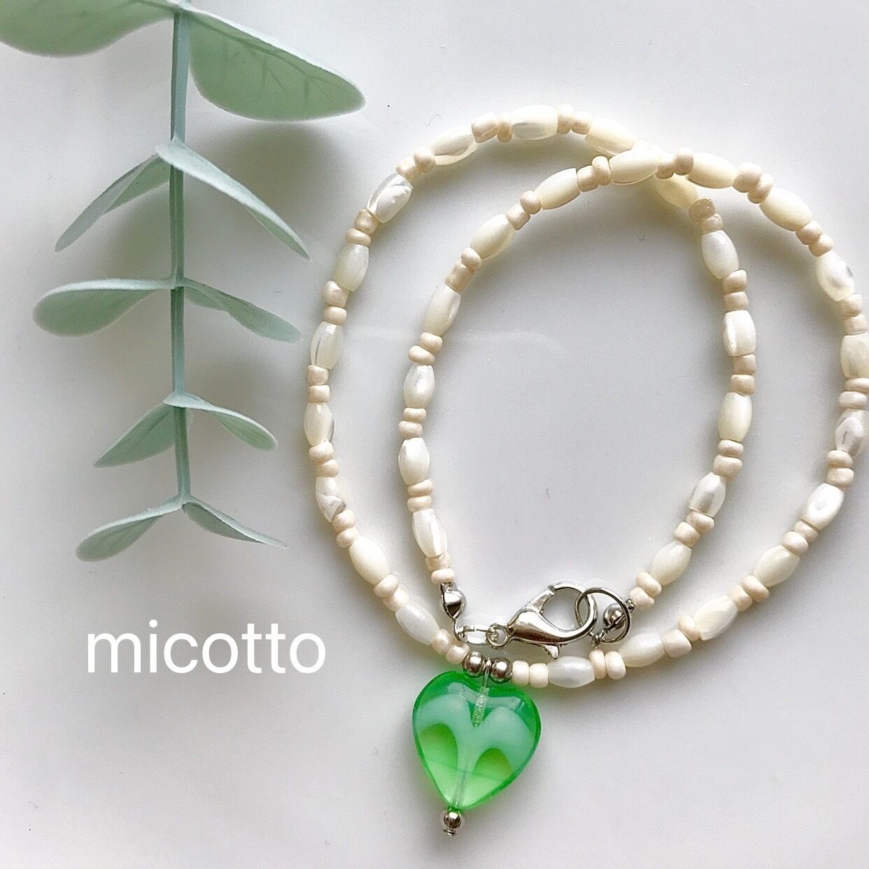 動くたび様々な角度から輝くシェルビーズが可愛いです♪