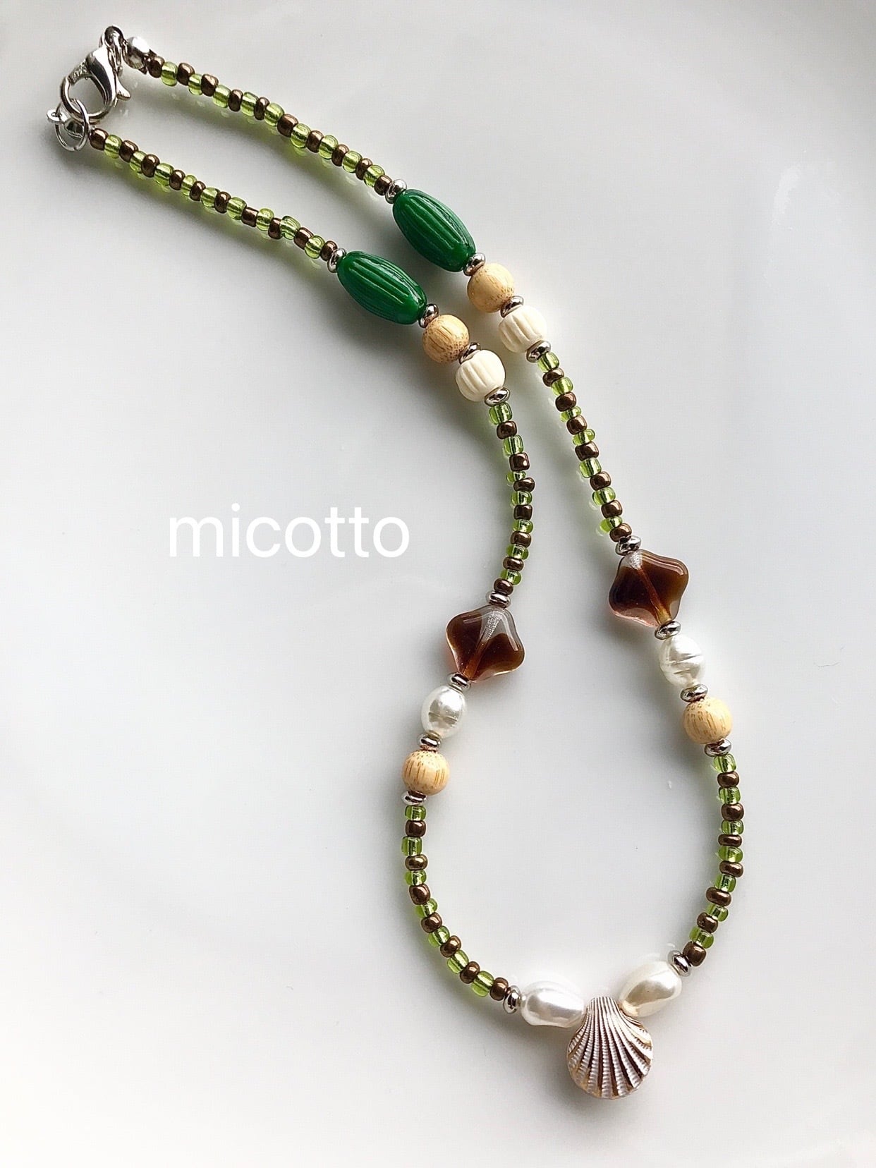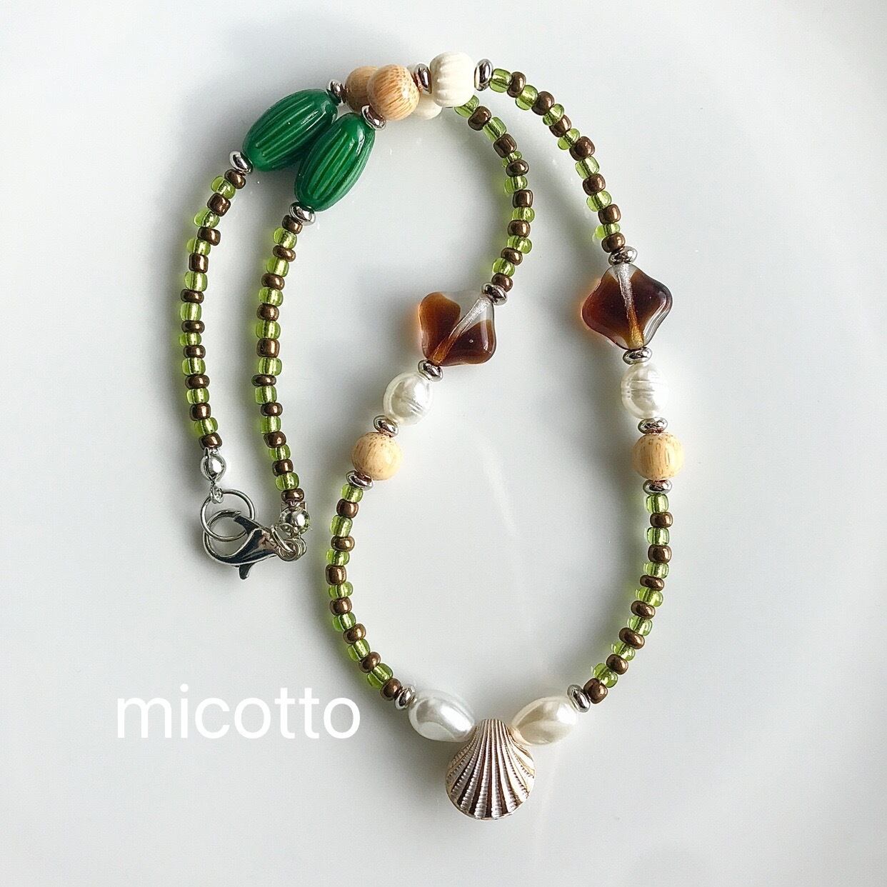 グリーンを基調としたナチュラルなビーズネックレスです♡
