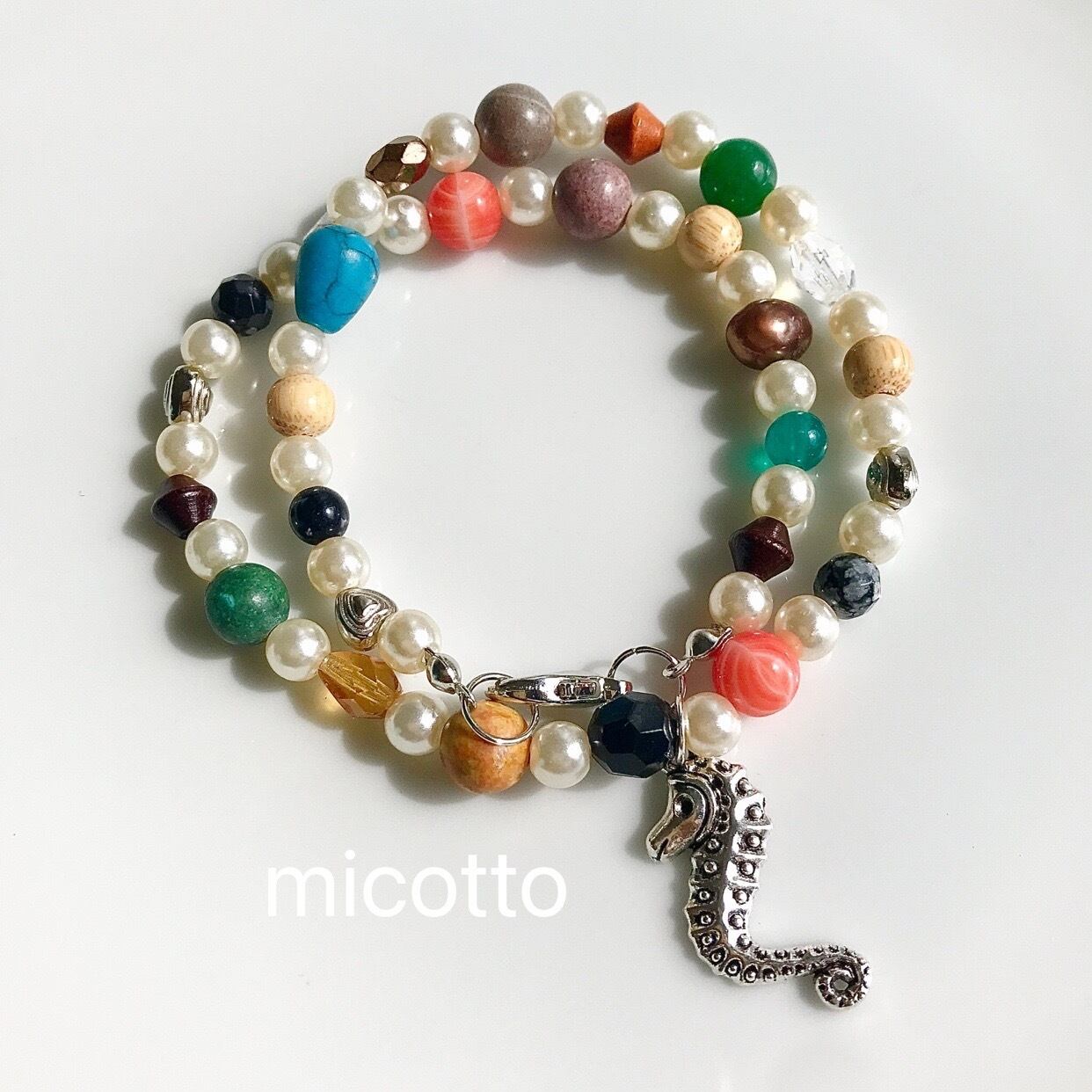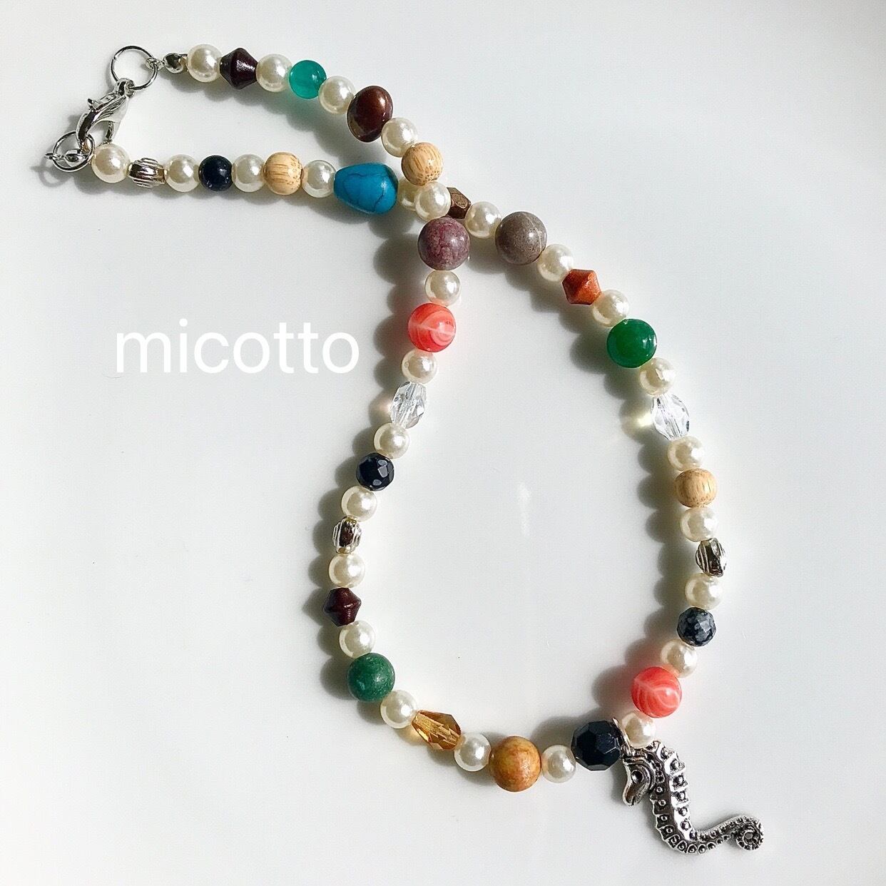 天然石や淡水パール、ウッドビーズなど様々なビーズを使用しました♡